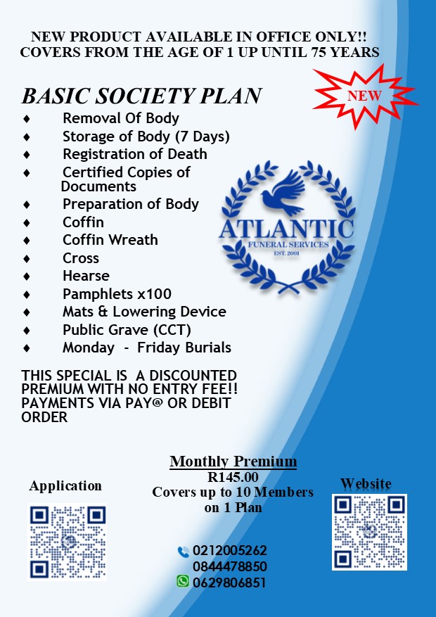 Atlantic Funeral Service and Burial Fund are an Authorised Financial Services Provider in terms of section 8 of the financial advisory and intermediary services act, 2002 (Act No. 37 of 2002) subject to the conditions and restrictions set out in the Annexure.
